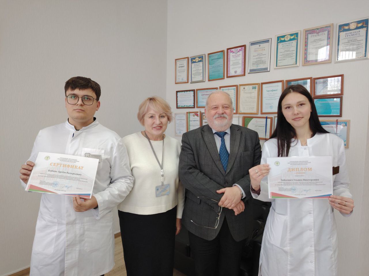 В декабре 2025 года года мы приняли участие в заочном конкурсе с международным участием наглядных материалов ( буклетов) по медицинской генетике. На конкурс было представлено 50 работ. И у нас достойный результат: Зайкевич Ульяна ЗЛД-251 - ДИПЛОМ 1 степени. 🥇 Бобнис Артем ЗЛД-251- сертификат участника. Поздравляем!