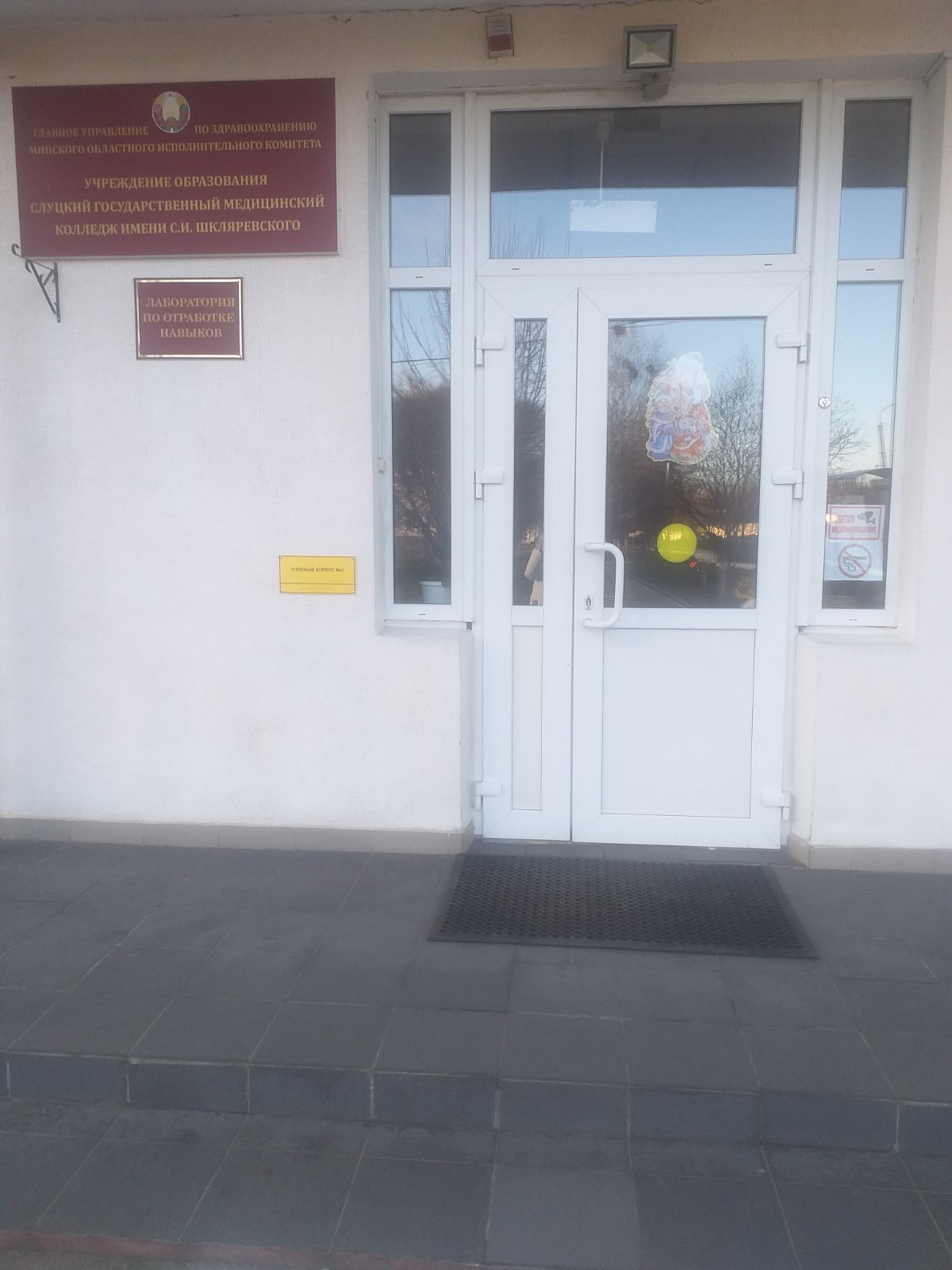 УО «Слуцкий государственный медицинский колледж имени С.И.Шкляревского» на данный момент оборудован телескопическим пандусом для преодоления ступенек на инвалидной коляске, кабинеты оснащены табличками с