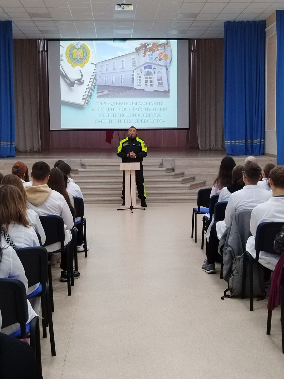 30 октября 2025 года перед учащимися колледжа выступил старший инспектор ДПС ГАИ Слуцкого РОВД Дмитрий Николаевич Семибратов. Изменения в ПДД, статистика дорожно-транспортных происшествий, правила пользования СИМ и много другой полезной информации узнали преподаватели и учащиеся от человека, который каждый день на посту и своими глазами видит к чему приводит беспечность на дорогах города и района. Много вопросов от учащихся и полные интересные ответы на каждый из них.