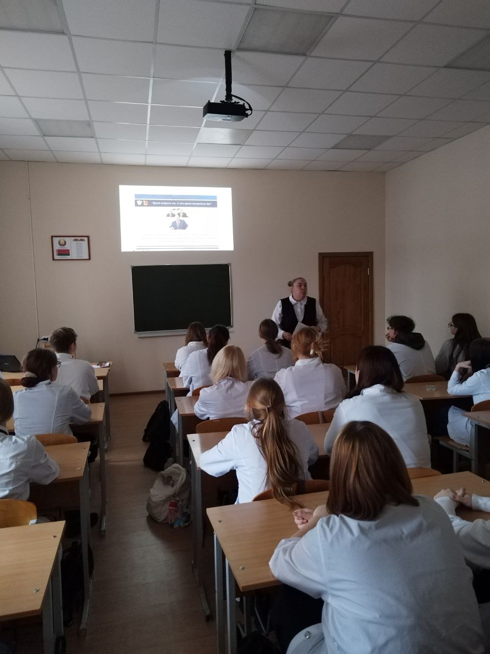 23 декабря Встреча с учащимися по итогам второго заседания Всебелорусского народного собрания состоялась сегодня, 23 декабря, в стенах колледжа. Перед ребятами выступила делегат собрания, первый секретарь Слуцкого районного комитета ОО "БРСМ" Задера Виктория Витальевна. Изложила итоги собрания четко, ясно и по существу.