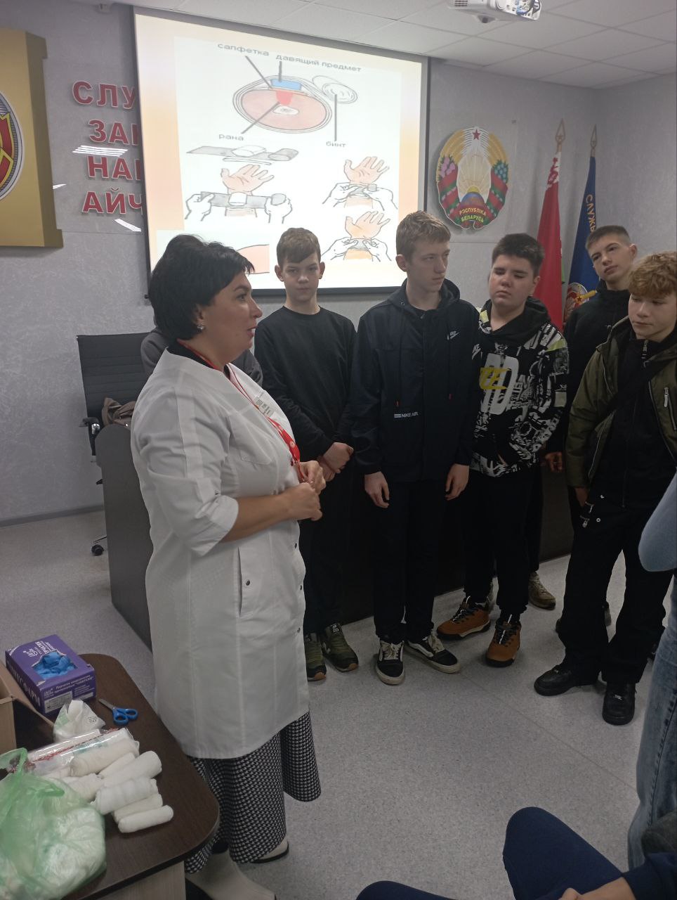 10 октября 2025 года в Слуцком РОВД для воспитанников ВПК Случь, при участии преподавателя и учащихся Слуцкого медицинского колледжа прошли занятия по оказанию первой медицинской помощи. Воспитанники ВПК не только изучили теоретическую часть, но и на практике применили полученные знания.
